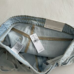 NWT American Eagle Womens Tomgirl Light Wash Denim Shorts Blue White Size 4