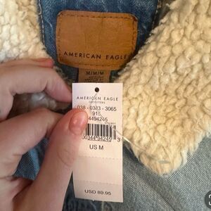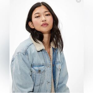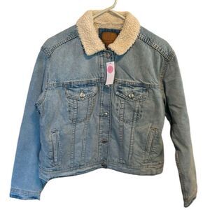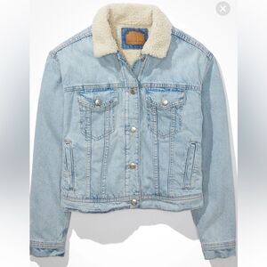 NWT- American Eagle- Women’s Sherpa Lined Light Wash Denim Jacket, Size Mediumm