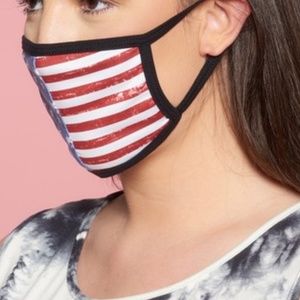 NWT Stars and stripes printed 2-layered washable face mask featuring elastic ear loops.
