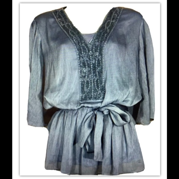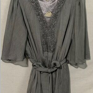 NWT American Glamour by Badgley Mischka| Size Small |Beaded V Neck Gray Blouse