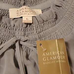 NWT American Glamour by Badgley Mischka gray Cottagecore high/lo maxi dress sz L