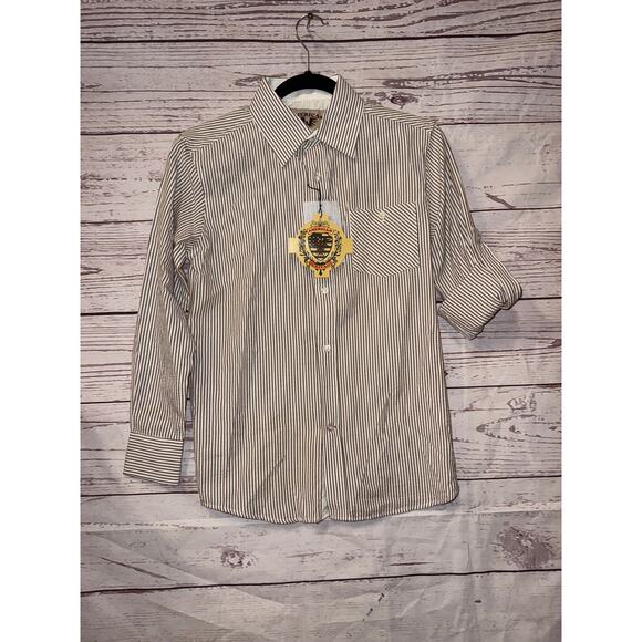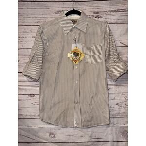 NWT American Heritage Brown and White Stripe Button Up Sz M
