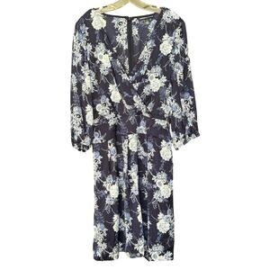 NWT American Living Navy Floral Long Sleeve Faux Wrap Midi Dress