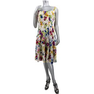 Lovely Ralph Lauren fit & flare midi dress New-with-Tags from JCPenney - $100 MSRP. The cotton/spandex dress has a colorful floral in a watercolor-like pattern with a fitted panel bodice & loosely pleated skirt. There's a short cotton liner inside the dress, 2 roomy pockets & a side zipper. Dress has been in storage for over a decade but is in perfect new condition.