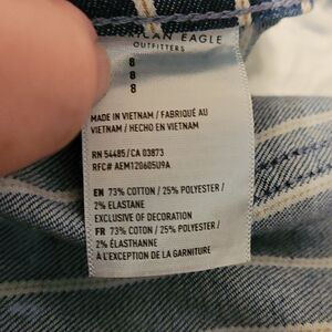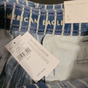 New with tags. Belted and zippered button front. Made with cotton, polyester and elastane materials. Tag says size 8.