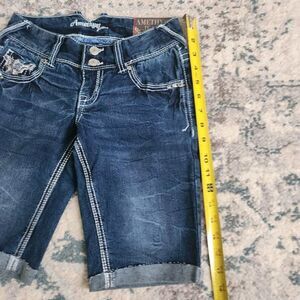 NWT Amethyst Jean Shorts Womens 0 Stretch Denim Distressed Blue Bermuda Low Rise