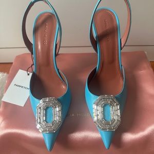 NWT Amina Muaddi Camelia Leather slingback pumps SZ 38