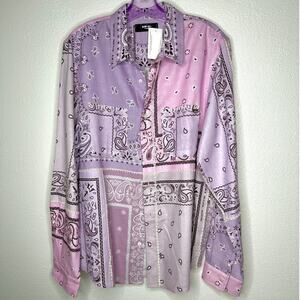 NWT Amiri Lavender Bandana Reconstructed Flannel Button Shirt XL