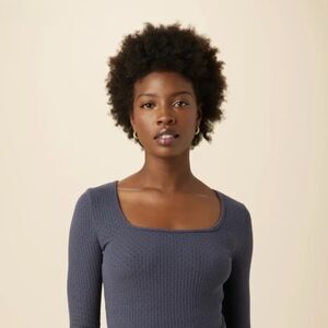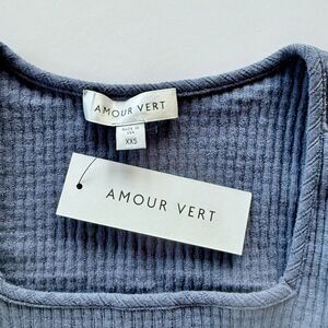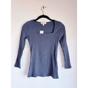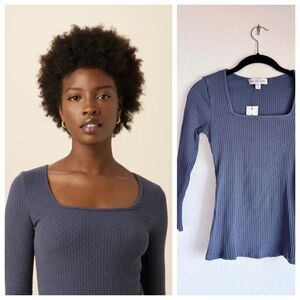 NWT Amour Vert Corsica Square Neck Waffle Knit Top in Pacific Blue Size XXS