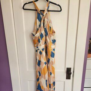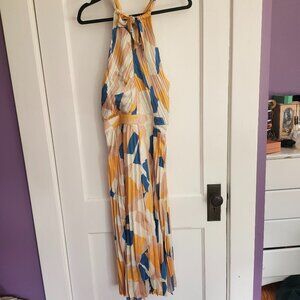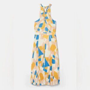 Brand new with tags, vibrant and comfortable summer dress! Size M. This dress has great details like the tie around the neck and the beautiful pleats. From the website: Breezy and lightweight in a sunny hue, our pleated midi dress is an effortless choice for summer days and nights.