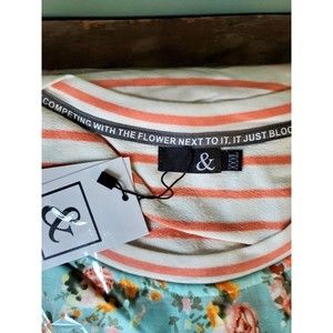 NWT Ampersand Ave Women's Crew Neck Pullover Teal Coral White Floral Sz 3XL