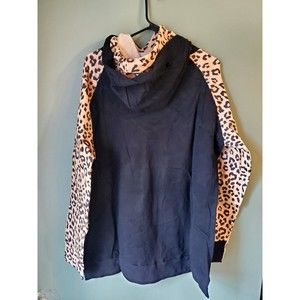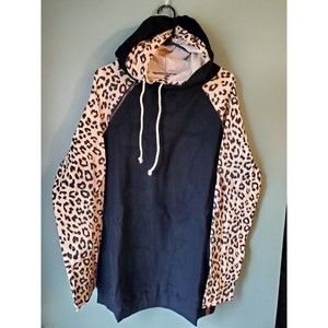 NWT Ampersand Avenue Black Leopard Print Double Hood L/S Hoodie Size XXXL