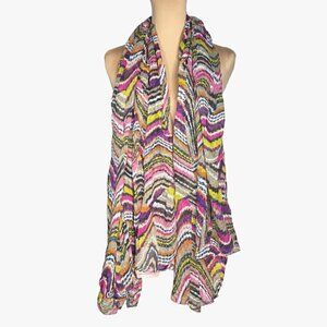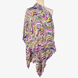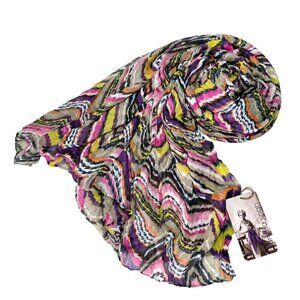 NWT Amrita Singh Chiffon Multicolor Wavy Pattern Scarf Beach Cover-Up Sarong