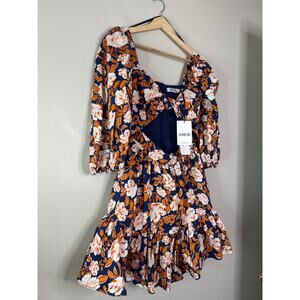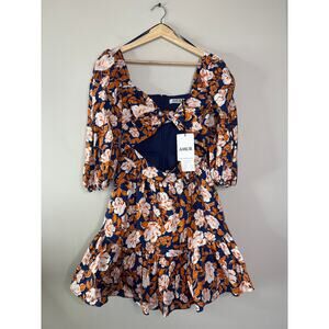 NWT Amur Medina Cutout Floral-Print Organic Stretch-Cotton Mini Dress Indigo