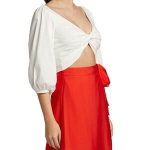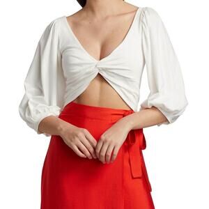 NWT Amur Oni Draped Ruched Cropped Top Organic Cotton Puff Sleeve White Large