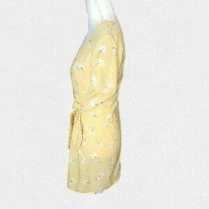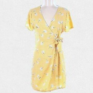 NWT Amuse Society Business Yellow Wrap Dress with White Flowers Short Sleeve
