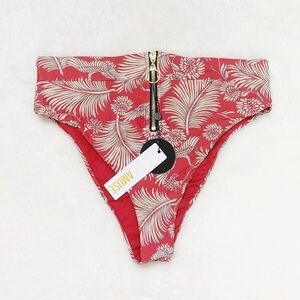 NWT Amuse Society Chicas High Waisted Floral Zip Front Cheeky Bikini Bottoms