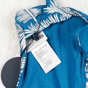 NWT Amuse Society Cora Lace Up One Piece Swimsuit Teal Palm Print