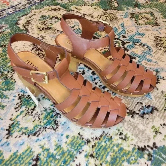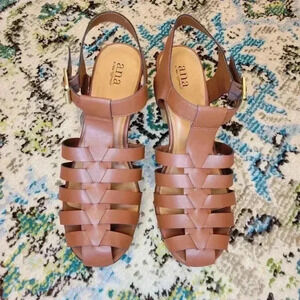 NWT A.n.a Brown Strappy Closed Toe Block Heal Sandals, Size 11M