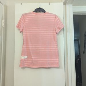 New with tags, Ana coral stripped V-neck tee size small. Purchased at JC Penney. Lightweight cotton. The measurement from armpit to armpit is 18" & from the top of the shoulder to the bottom it is 26". Smoke free home.