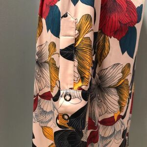 Color: Pink with blue, yellow and red flowers