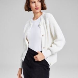 Comfortably relaxed and refined with imitation pearl buttons, this cardigan from And Now This® is framed by raglan blouson sleeves with a very nice drape - Size S but roomy.
