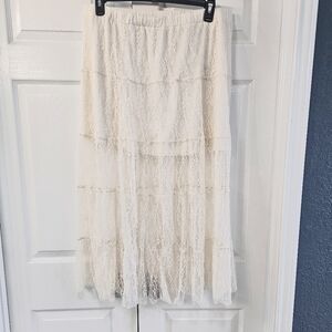 NWT And Now This (Macy's) Pull-on Tiered Lace Maxi Skirt XL Cream