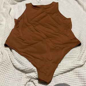 Mocha brown, jersey stretch with subtle shine bodysuit