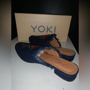 NWT And in box Yoki denim mule flats with rosé embroidery size 7.5