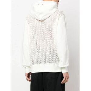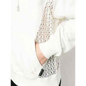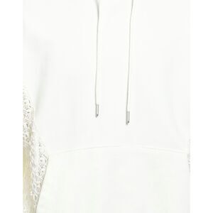 ivory white cotton floral-lace detailing contrasting panel detail embroidered logo drawstring hood front patch pocket long sleeves ribbed edge