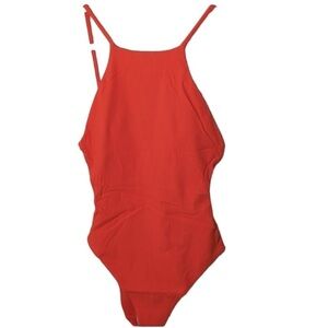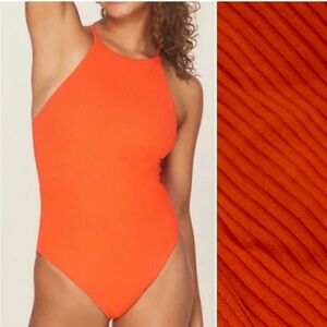 NWT Andie Swim Asbury Rib One Piece Swimsuit Sire Bright Orange Sz M