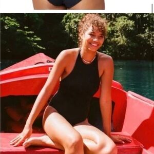 NWT Andie Swim Luzon One Piece Swimsuit Halter Black Modest Coverage Sz M