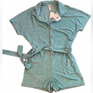 NWT Andie Swim Terry Button up Romper, size Medium. Cablu blue