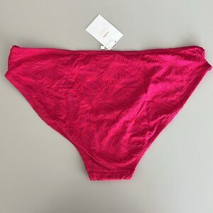 Stylish bikini bottom in a vibrant pink color. Features a subtle floral pattern.