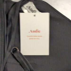 NWT Andie Tahiti Top Black Adjustable Straps Metal Hardware V Neck Bikini L