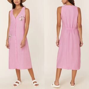 NWT Andie x Fanm Mon Anamur Midi Dress Floral Embroidered Aster Pink Size XL
