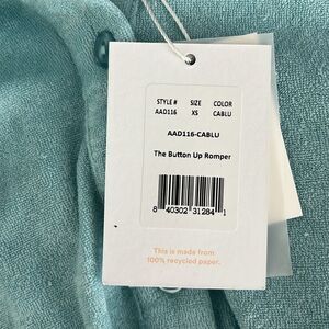 NWT Andie Swim The Palma Terry Button- Up Romper in Cablu Size XS