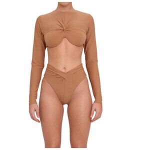 NWT Andrea Iyamah Akacia Nude Long Sleeve Bikini Top XS, S
