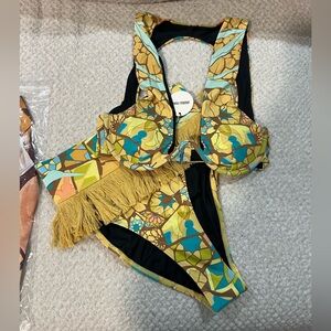 NWT Andrea Iyamah Lasa High Rise Bikini top and bottom Ilia print - S