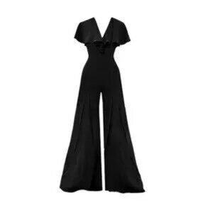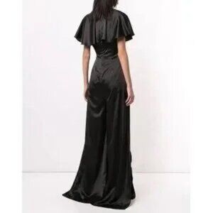 Stylish NWT black jumpsuit by Andrea Iyamah. Ideal for versatile styling. 100% poly. Dry clean only. Hidden back zipper closure. Flounce overlay. Satin fabric. Tall girl friendly