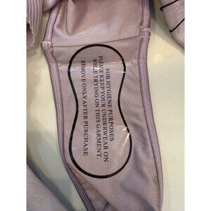 These bikini bottoms feature a chic lilac hue and a high-rise, high-leg design inspired by 70s aesthetics. The cheeky coverage and 3-tier pleated ruffle details lend a sophisticated yet playful touch. Designed for durability and comfort, the nylon-elastane blend ensures flexibility and a flattering fit. Measurements flat lay not stretched: waist 15", top to bottom 14.5". New in bag with hygiene liner. *BOTTOMS ONLY AVAILABLE