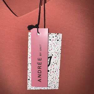 The NWT Andree By Unit 3/4 Sleeve Scalloped Top in coral salmon color is a stylish and versatile blouse perfect for casual occasions. Made from a blend of polyester and rayon, this lightweight top features a V-neckline, relaxed fit, and oversized design. The colorful theme and basic style make it a great addition to your summer or fall wardrobe. With its 3/4 sleeves and pullover closure, this top offers both comfort and style for a chic look.