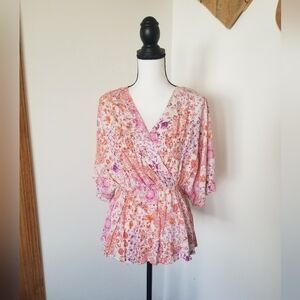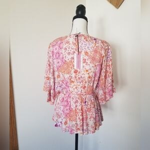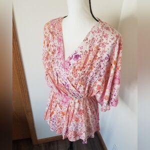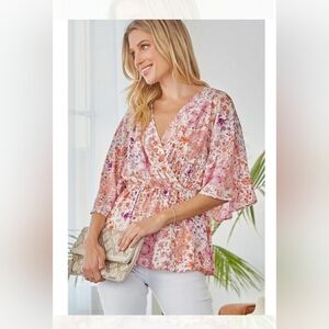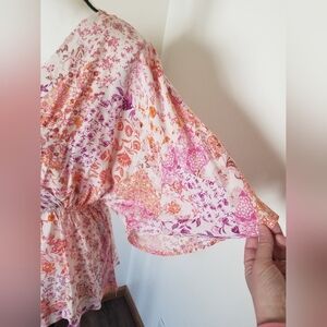 NWT Andree Catherine Floral Shirt, new with tags, size small, brand Andree by Unit, floral, kimono sleeves, cinched waist, mixed prints, spring, flowy, original price $54