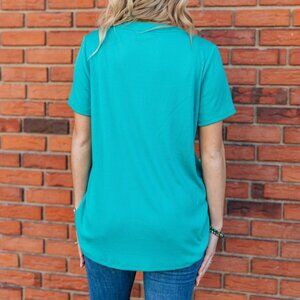 NWT Andree by Morgan Nicole Ribbed Button Detail Tee in Emerald