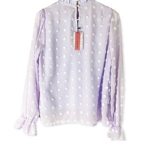 NWT Andree by Unit Lavender Swiss Dot Ruffle Blouse