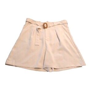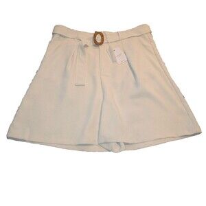 NWT Andthewhy - Ivory Beige Pleated high Waist with Rattan Buckle Shorts size 2X