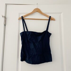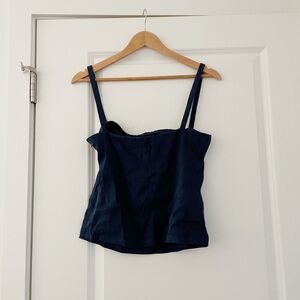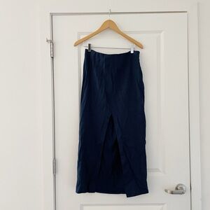 NWT Anemos Stretch Italian Linen Set Naomi Top Front Slit Skirt Extra Large Navy