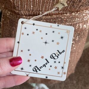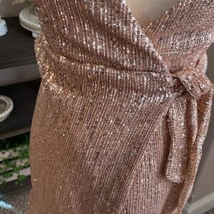 Brand new with tags! True wrap style dress. Beautiful champagne sequined mini dress. Adjustable straps. Fully lined. Comes from a smoke free home.