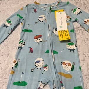 New with tags Angel Dear one piece zippered footie pajamas in super soft bamboo. Fun blue Golf Club Pro print. Size 3-6 months.