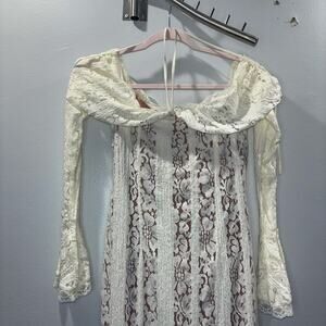 This brand new with tags Angel Lane Georgette Maxi Dress is a dreamy, romantic piece featuring a stunning ivory lace overlay and an elegant off-the-shoulder neckline. Perfect for weddings, formal events, or special occasions, this gown offers a timeless bohemian charm with a modern silhouette.